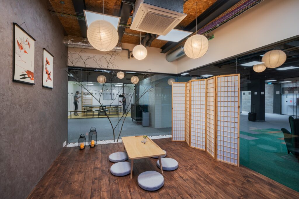Nové druhé patro je od toho čtvrtého odlišné. Prostor je plný zeleně, působí vzdušně a otevřeně. Zasedačky jsou nejrůznějších velikostí a stylů, například ve stylu staré knihovny nebo zenové oázy.